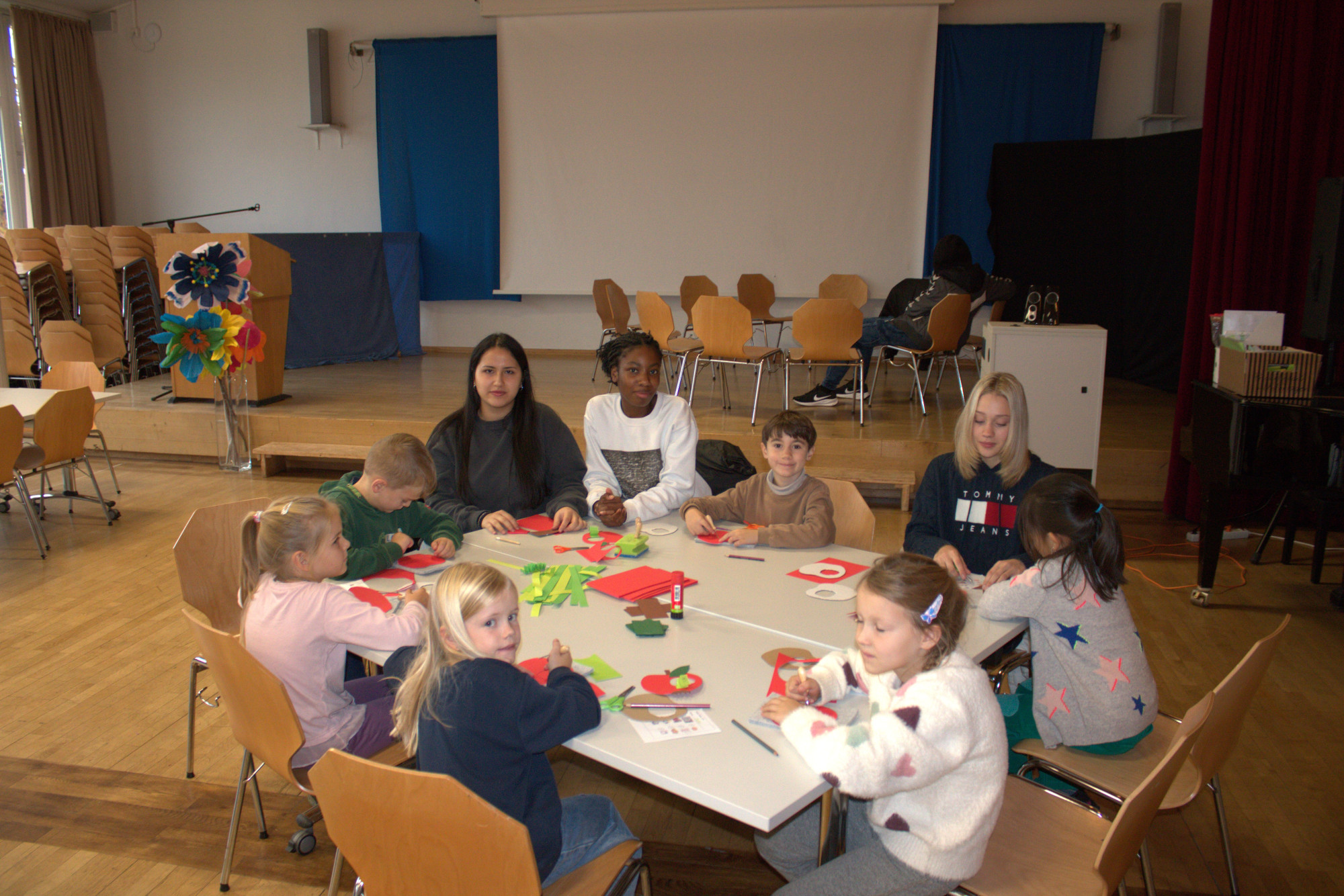 Ein großes Ereignis für die Erstklässler und eine Herausforderung für die Zehntklässler - unsere Ältesten bereiteten für die Jüngsten Apfelaufgaben zum Basteln, Zuhören, Aktivsein und Genießen vor und die Einser waren hellauf begeistert!