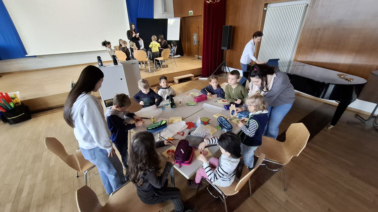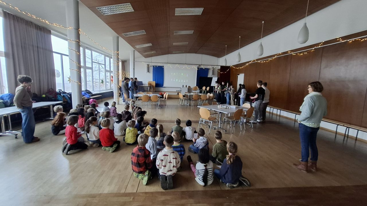 In der festlich geschmückten Aula bastelten die Kinder dann Karten und kleine Geschenke, es gab leckere Waffeln, eine Vorlesegeschichte und einen weihnachtlichen Stopptanz.