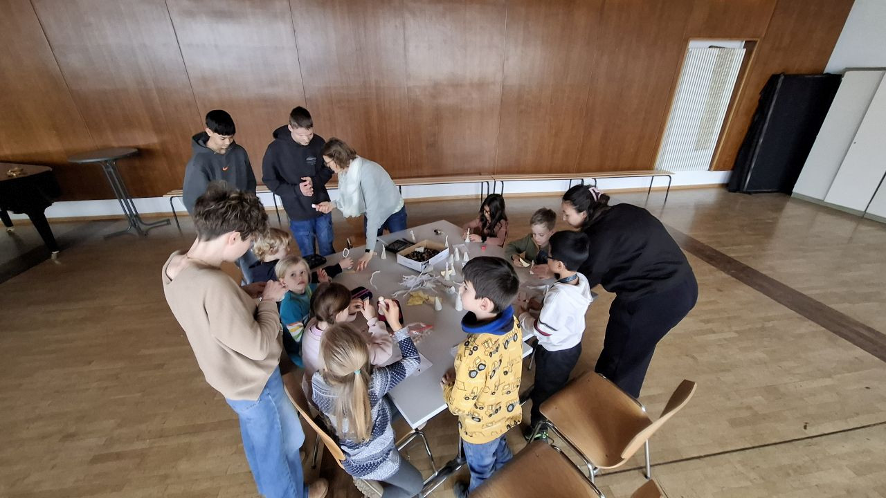 Das Weihnachtsbasteln mit Klasse 10 fand statt; zur Eröffnung gab es sogar ein Boomwhacker-Musikstück aus dem "Nussknacker", das die 10er einstudiert hatten - das war toll!